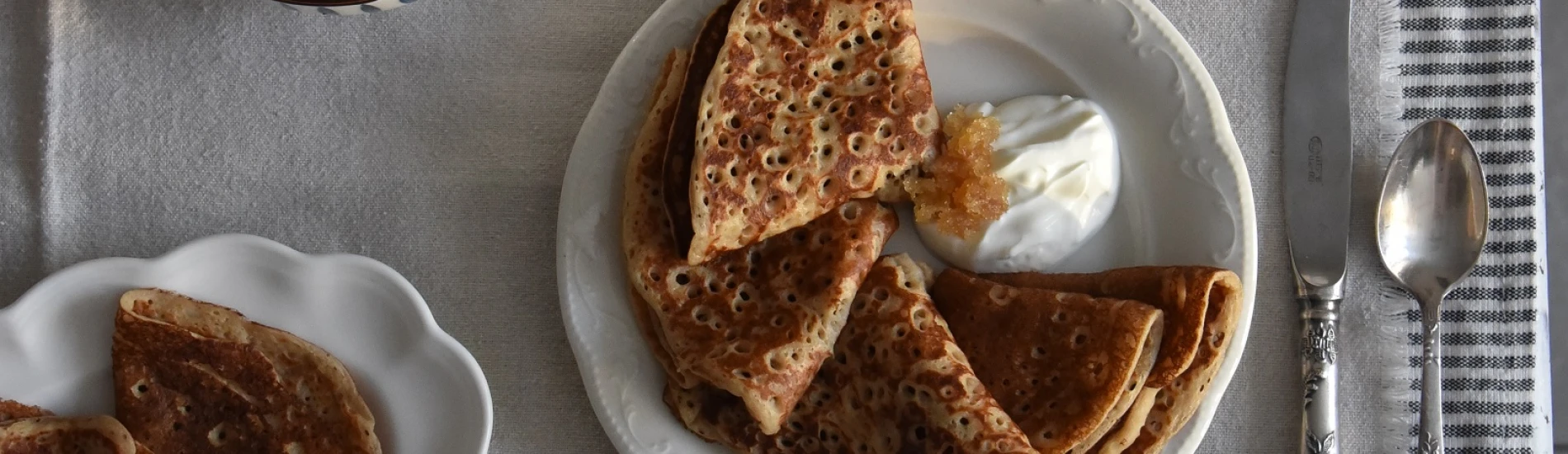 - "Красные" гречишные блины со сметаной и икрой щуки,